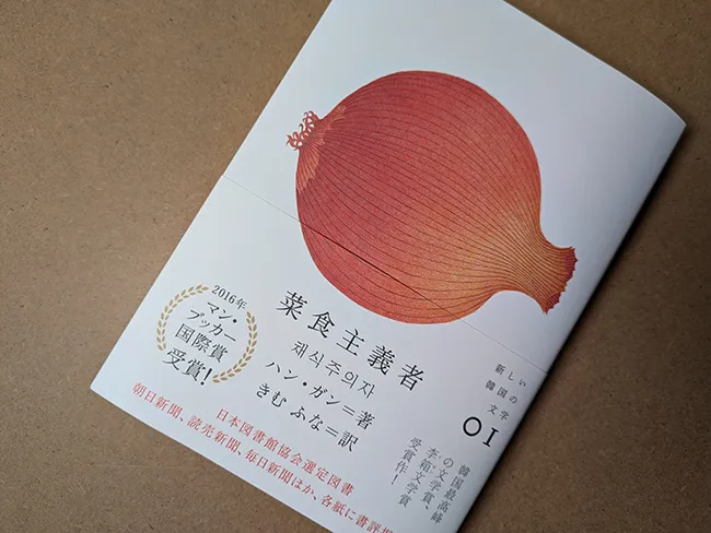 【素敵な装幀】菜食主義者/ハン・ガン 訳=きむ ふな 2024.11.152025.02.14 装丁デザインは寄藤文平+鈴木千佳子さん 玉ねぎのカバーイラストも鈴木千佳子さん。菜食主義を表す野菜を1つだけ大きく配置。このシリーズでは白い用紙に1つだけ大きく象徴をいれることが多いようです。実用書っぽくならず、小説だとわかり、かつ目を引く装丁です 背表紙。01というのは「新しい韓国の文学」(2000年以降出版された韓国小説の中で、最も面白く優れたものだけを厳選し、翻訳出版してきたシリーズ)のナンバリングのようです 表4 ざらざらした用紙にナンバーのみ印刷されたシンプルな表紙 表紙の背表紙 別丁扉はたまねぎのイラストのパターンでポップな印象。半透明の用紙でで01という文字が透けています 本文。明朝体を基本に、心理描写の部分は太いゴシックにしてあります ノンブル 章見出し この記事をSNSでシェア!