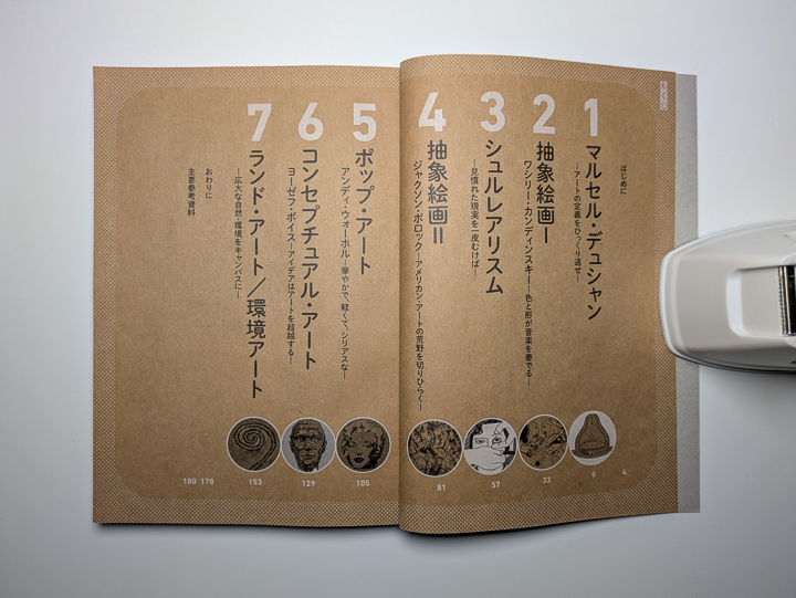 本文用紙はシュールレアリスムやポップアートの内容を表現するため、なんと両晒クラフト、b7バルキー、OKアドニスラフW、オーロラコートの4種類が使われているそうです!