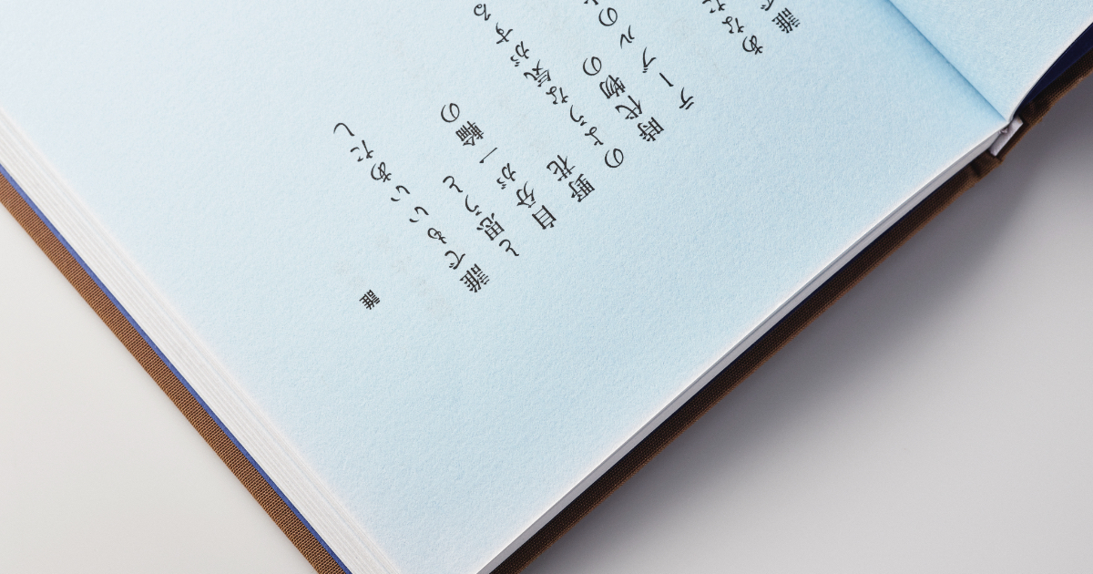 ——読者の手に渡る一冊の詩集は、だから中身の詩作品を運ぶだけの単なるツールではなく、一個の工芸品だとも言える。手に持って快く、余計なものに煩わされずに頁を開く、その繰り返しに耐える、むしろ何度でもそうしたくなる本、それが詩集の理想形ではないだろうか。中身の詩を飾るのではなく、詩を素手で差し出す器としての本、この詩集をそんな風に感じてもらえるだろうか。